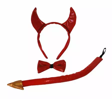 1x set accessoires dĂ©guisement diable, pour adulte et enfant. composĂ© d’un serre-tĂȘte, d’un noeud papillon et d’une queue avec bout dorĂ©. taille unique adulte. conditionnĂ© en emballage individuel. Attention !! ceci est un set de dĂ©guisement pour adulte ! tenir Ă l’Ă©cart du feu et de toute autre source de chaleur !