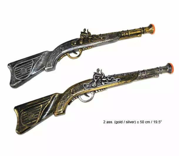 1x pistolet boucanier pirate. matiĂšre 100% plastique. longueur 50cm environ. finition dorĂ©e et argentĂ©e. conditionnĂ© en vrac avec Ă©tiquette individuelle, fourni avec pack-prĂ©sentoir carton pour 12 pcs achetĂ©es Attention !! ne convient pas aux enfants de moins de 3 ans, danger d’avaler des petites piĂšces.important !! ne jamais utiliser ce modĂšle avant d’avoir lu la notice d’utilisation Ă l’intĂ©rieur. nous dĂ©clinons toute responsabilitĂ© en cas de mauvaise utilisation ou transformation de cet article. (compte tenu du rĂ©alisme de ces rĂ©pliques d’armes, le port de ces modĂšles est interdit sur la voie publique.