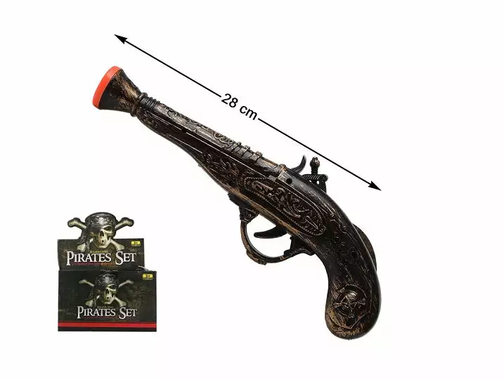 1x boucanier/pistolet pirate dorĂ©. matière 100% polyester. longueur 28cm environ. conditionnĂ© en vrac avec Ă©tiquette individuelle, fourni avec pack-prĂ©sentoir carton pour 12pcs achetĂ©es Attention !! ne convient pas aux enfants de moins de 36 mois, danger d’avaler de petites pièces ! tenir loin du feu et de toute autre source de chaleur ! important !! nous dĂ©clinons toute responsabilitĂ© en cas de mauvaise utilisation ou transformation de cet article. (compte tenu du rĂ©alisme de ces rĂ©pliques d’armes, le port de ces modèles est interdit sur la voie publique).