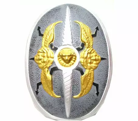 bouclier avec fausse dorure en plastique. dimensions : 60x40cm Attention !! ceci n’est pas un jouet mais un accessoire de dĂ©guisement pour adulte. tenir loin du feu et de toute autre source de chaleur.