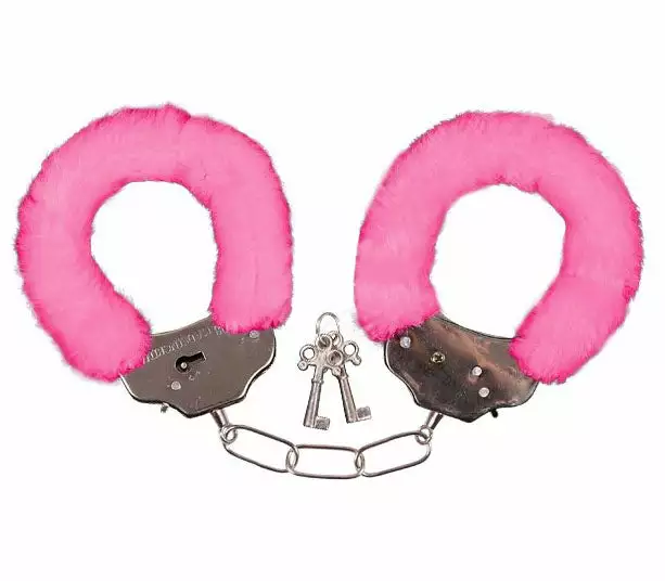 1x paire de menottes peluche rose avec clés. matière menottes 100% métal, peluche 100% polyester. conditionnée en emballage individuel carton Attention !! ceci est un accesoire de déguisement pour adulte ! tenir loin du feu et de toute autre source de chaleur !