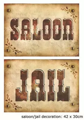 panneau recto/verso saloon/jail, feuille plastifiĂ©e Ă suspendre, dimensions: 29x41cm Attention !! ceci n’est pas un jouet mais un article de dĂ©coration. tenir Ă l’Ă©cart du feu et de toute autre source de chaleur