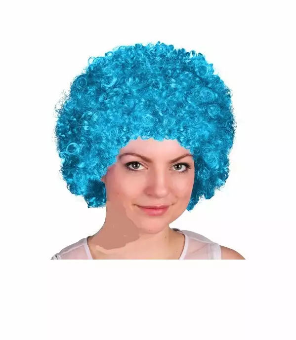 1x perruque afro moyenne turquoise. matiĂšre 100% polyester. taille unique adulte. poids 120gr environ. conditionnĂ©e en emballage plastique individuel Attention !! ceci n’est pas un jouet mais un accessoire de dĂ©guisement pour adulte ! tenir loin du feu et de toute autre source de chaleur !