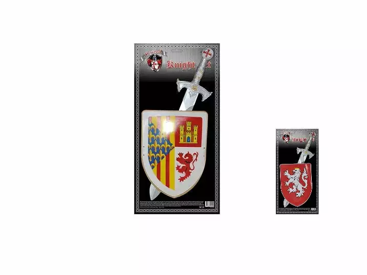 1x set d’accessoires de chevalier 2pcs. matière 100% polyester. composĂ© d’un bouclier et d’une Ă©pĂ©e. disponible en 2 modèles selon arrivage (voir photo). conditionnĂ© en carte carton individuelle Attention !! ne convient pas aux enfants de moins de 36mois, danger d’avaler de petites pièces ! tenir loin du feu et de toute autre source de chaleur !