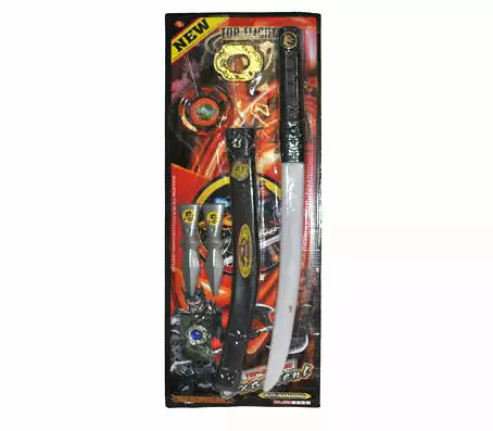 set d’armes de ninja en plastique. set composĂ© d’un sabre, deux couteaux Ă lancer, une Ă©toile ninja et une ceinture. Attention !! ne convient pas aux enfants de moins de 36 mois, danger d’avaler des petites piĂšces. garder la feuille d’information pour une utilisation ultĂ©rieure.